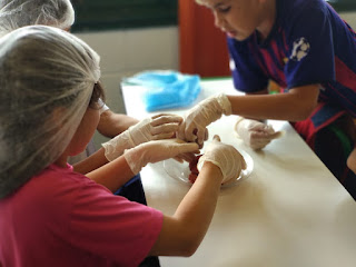 Os alunos de ambas as turmas ficaram entusiasmados, pois tiveram uma aula de anatomia, os materiais utilizados durante as aulas teve acompanhamento técnico especializado, bem como nos orientou com relação ao descarte do mesmo.